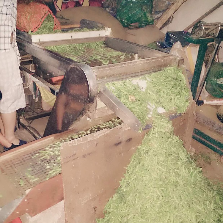 毛豆剝殼機它代替了原始生產(chǎn)—手工剝豆,極大地提高了生產(chǎn)效率,節(jié)省了生產(chǎn)成本.實踐證明,手工剝豆出豆率低,還需大量的勞動力和輔助設(shè)備.毛豆剝機克服了手工剝豆的缺點,它具有出豆率高、速度快、占地面積小、運轉(zhuǎn)平穩(wěn)、耗電省、外形美觀等特點.本機除電機、減速機外其余均為不銹鋼材料制作,完全符合食品衛(wèi)生b出口標準.本機與毛豆振動分級機配套使用,標準生產(chǎn)能力為:500Kg/h(已經(jīng)分級過后的毛豆為標準).